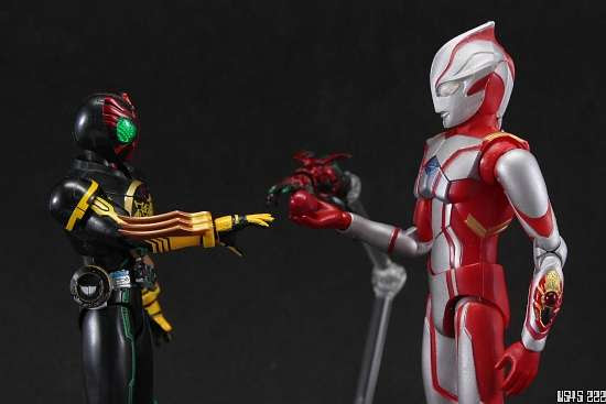 - (Deve ser algo semelhante ao que aconteceu comigo quando os membros da Crew GUYS se fundiram a mim. Naquela hora, eu me tornei o Ultraman Mebius Phoenix Brave!)