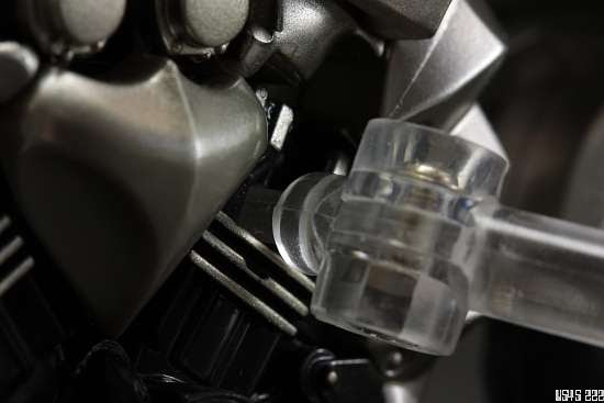 O problema é que os suportes figma não são fortes o suficiente para sustentar o peso da moto. Sendo assim é recomendável usar as Soul Stage for Mechanics da Bandai, que vem com uma base com catraca, feita para segurar modelos de metal.
