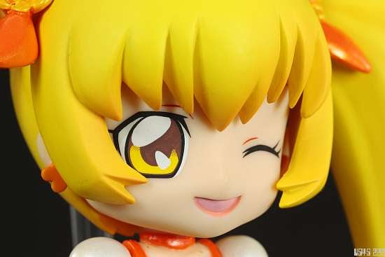 O legal desta Sunshine é a variedade de expressões, condiz com as da série; as fitas nos cabelos são belíssimos, a pintura acetinada deu destaque. E a Pot Pourri está bem representada, igualzinha as caretas que fazia! Legal que vêm balões com as principais frases, assim dá pra montar até histórias em post especiais. Ficou demais essa montagem do ataque "Precure Gold Forte Burst!". Em breve lerei os outros posts sobre as demais Chibi-Arts.