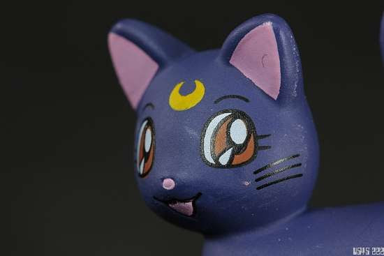 A expressão é diferente da Sailor Venus, com a boca fechada. A máscara com pintura acetinada chama a atenção. E vendo bem, é possível notar o símbolo da lua na testa dela.